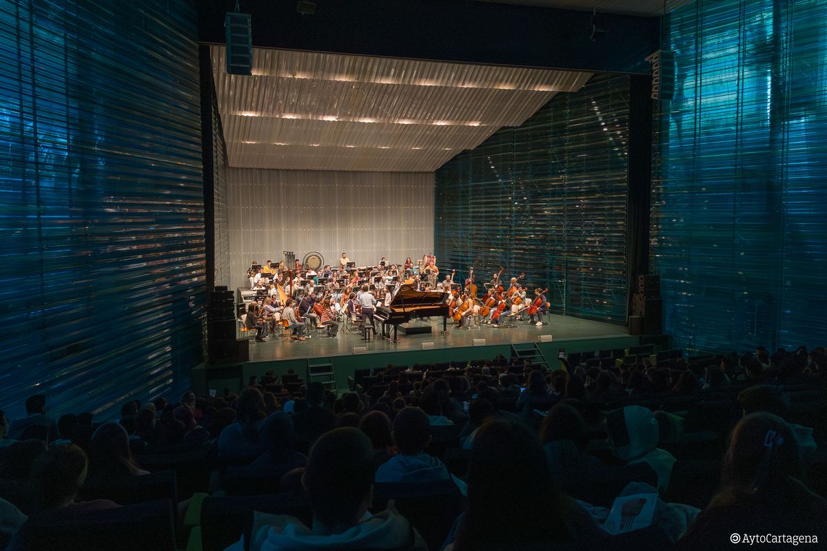El Batel ha acogido los dos pases del evento previo al concierto extraordinario que ha contado con la participación de la pianista solista Laura Moratón Carrasco, la Orquesta Sinfónica de Cartagena y la compañía El Hechizo Teatro
