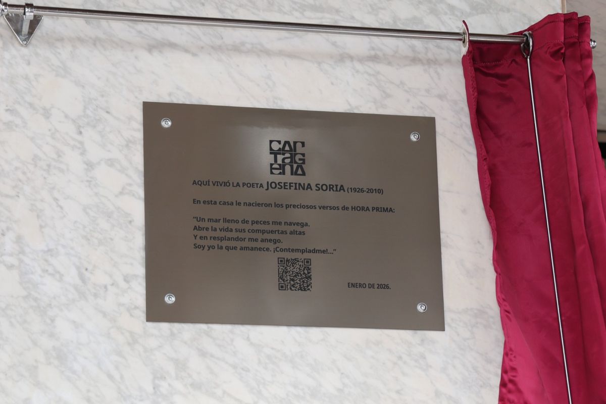 Cartagena ha sumado un nuevo atractivo al recorrido literario de la ciudad con el descubrimiento de una placa en memoria de la poetisa Josefina Soria (Albacete, 1926), en la fachada del edificio de la Muralla del Mar, nº 19, donde residió y donde el mar Mediterráneo inspiró parte de su creación poética.