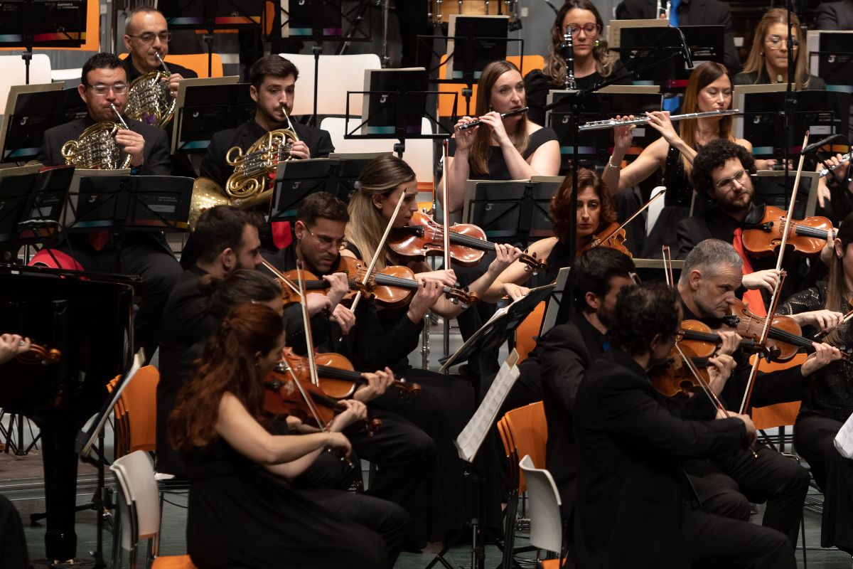 El público asistente al concierto disfrutó de un amplio programa interpretado por la Orquesta Sinfónica de Cartagena bajo la dirección de Leonardo Martínez, cuyo trabajo al frente de la formación resulta clave en el crecimiento constante de este Concierto Extraordinario año tras año. Una orquesta muy vinculada a la ciudad y al propio certamen, ya que muchos de sus integrantes han formado parte de Entre Cuerdas y Metales en distintas ediciones y hoy desarrollan su labor profesional como intérpretes y docentes en conservatorios y entidades musicales de Cartagena y de toda la Región.