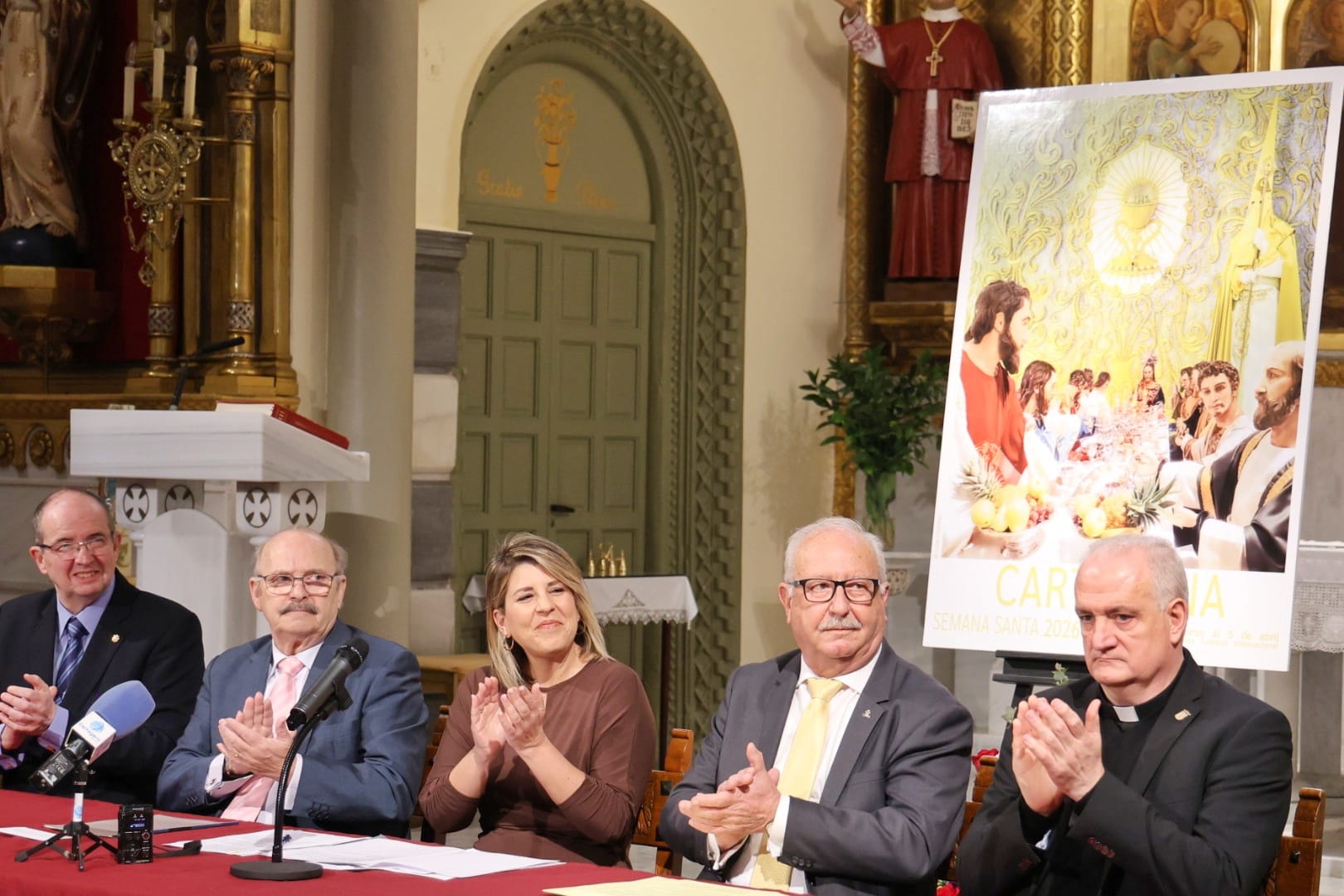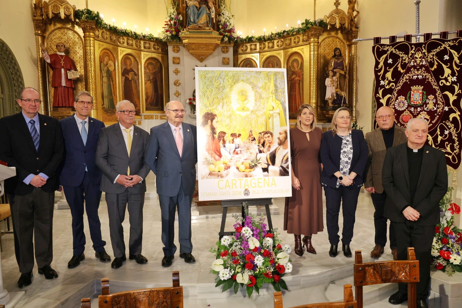 La Iglesia de San Antonio María Claret, conocida popularmente como "Los Padres", ha acogido la mañana de este sábado la presentación oficial del cartel de la Semana Santa de Cartagena 2026. En un templo abarrotado de fieles, cofrades y autoridades, se ha descubierto la obra ganadora del concurso, titulada "Cenáculo Californio", una fotografía de Julián Contreras que tiene como protagonista al grupo escultórico de la Santa Cena y el Santísimo Cristo de los Mineros.