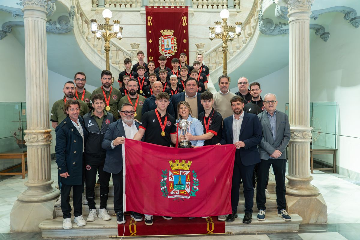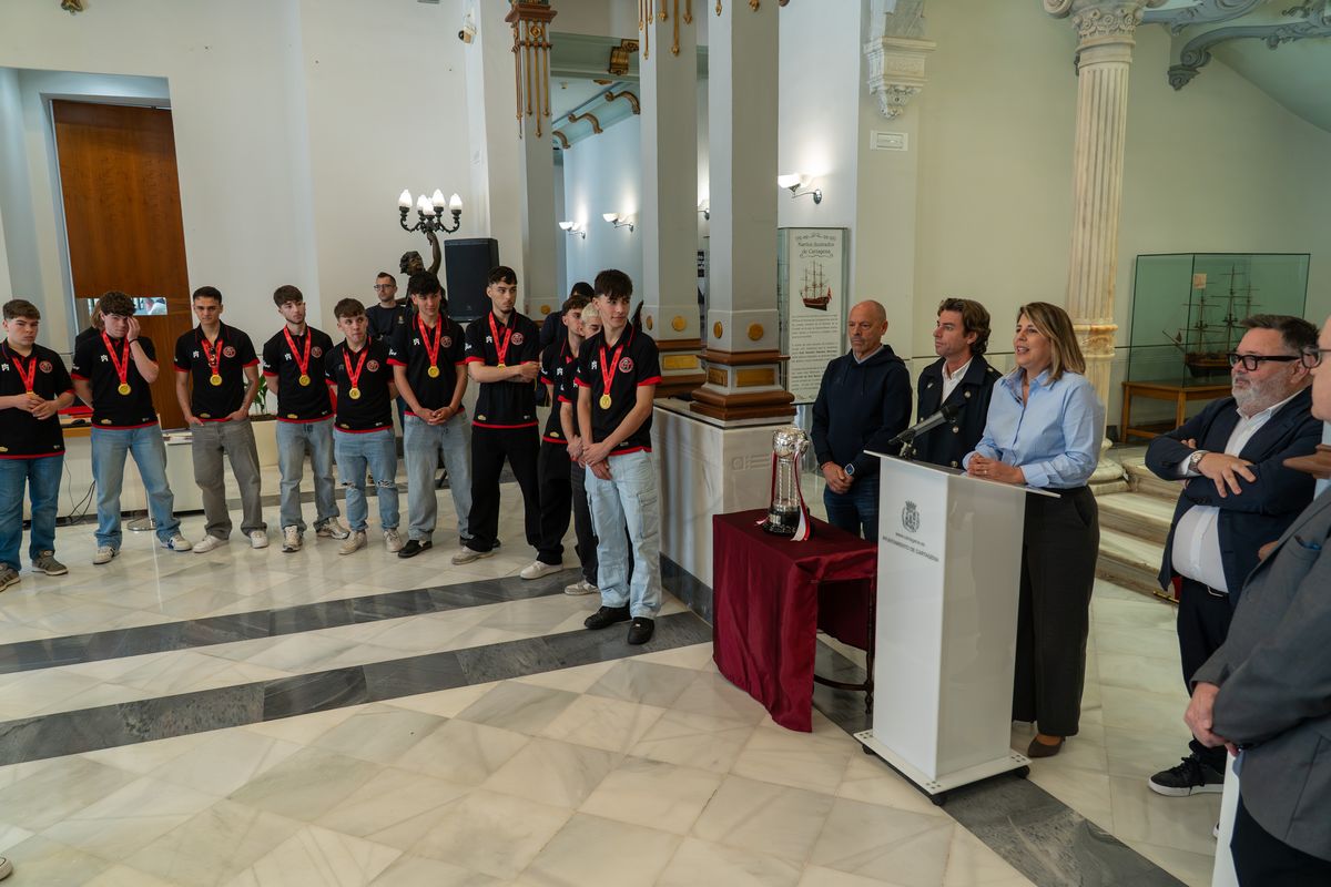 Durante la recepción, la alcaldesa ha hecho entrega al equipo de una bandera de Cartagena y una reproducción de la Cola de Ballena, realizada en vidrio en San Lucía.