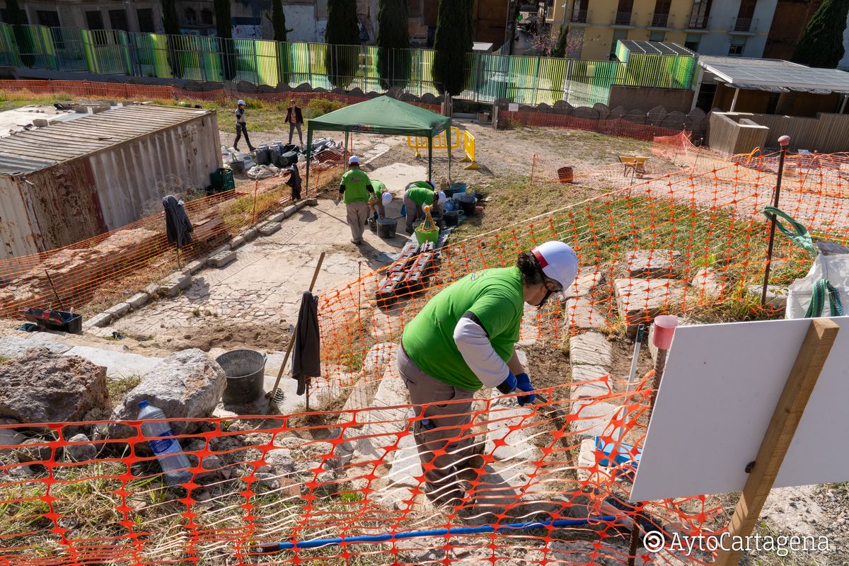 El Ayuntamiento de Cartagena, a través de la Agencia de Desarrollo Local y Empleo (ADLE), continúa avanzando en la recuperación y puesta en valor del patrimonio arqueológico mediante el programa de formación y empleo "Contribución a Espacios Históricos del Casco Antiguo". En esta ocasión, los trabajos se han centrado en el entorno del Barrio del Foro Romano, donde 40 alumnos-trabajadores están aplicando conocimientos específicos en albañilería, jardinería, fontanería y energías renovables.