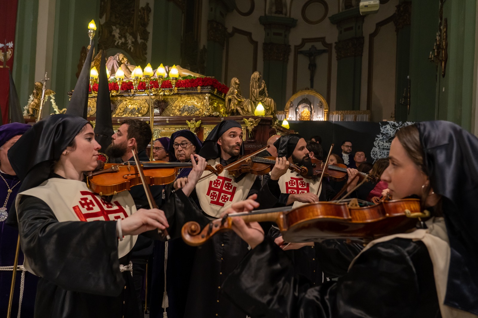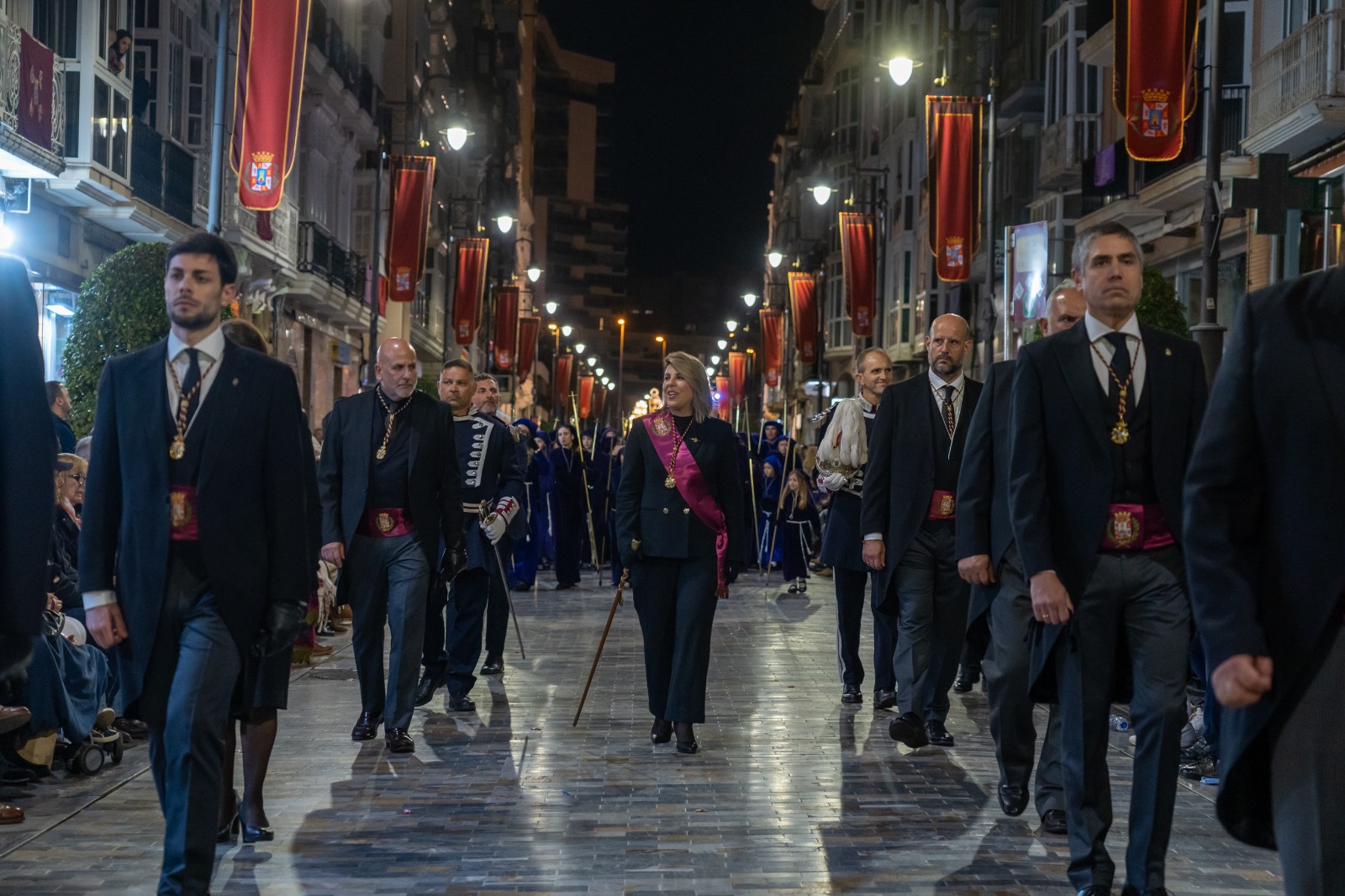 La corporación municipal del Ayuntamiento de Cartagena, liderada por la alcaldesa Noelia Arroyo, participó este Viernes Santo en la tradicional procesión del Santo Entierro, uno de los desfiles pasionales más solemnes de la Semana Santa, festividad declarada de Interés Turístico Internacional. La comitiva siguió al trono del Santo Sepulcro. Contó con la presencia de los ediles de la corporación, entre los que se encontraban los tenientes de alcalde Gonzalo López Pretel, Diego Ortega, Cristina Mora y José Ramón Lorca; así como los portavoces Ignacio Jáudenes, Jesús Giménez, Manuel Torres y Juan Pedro Torralba.