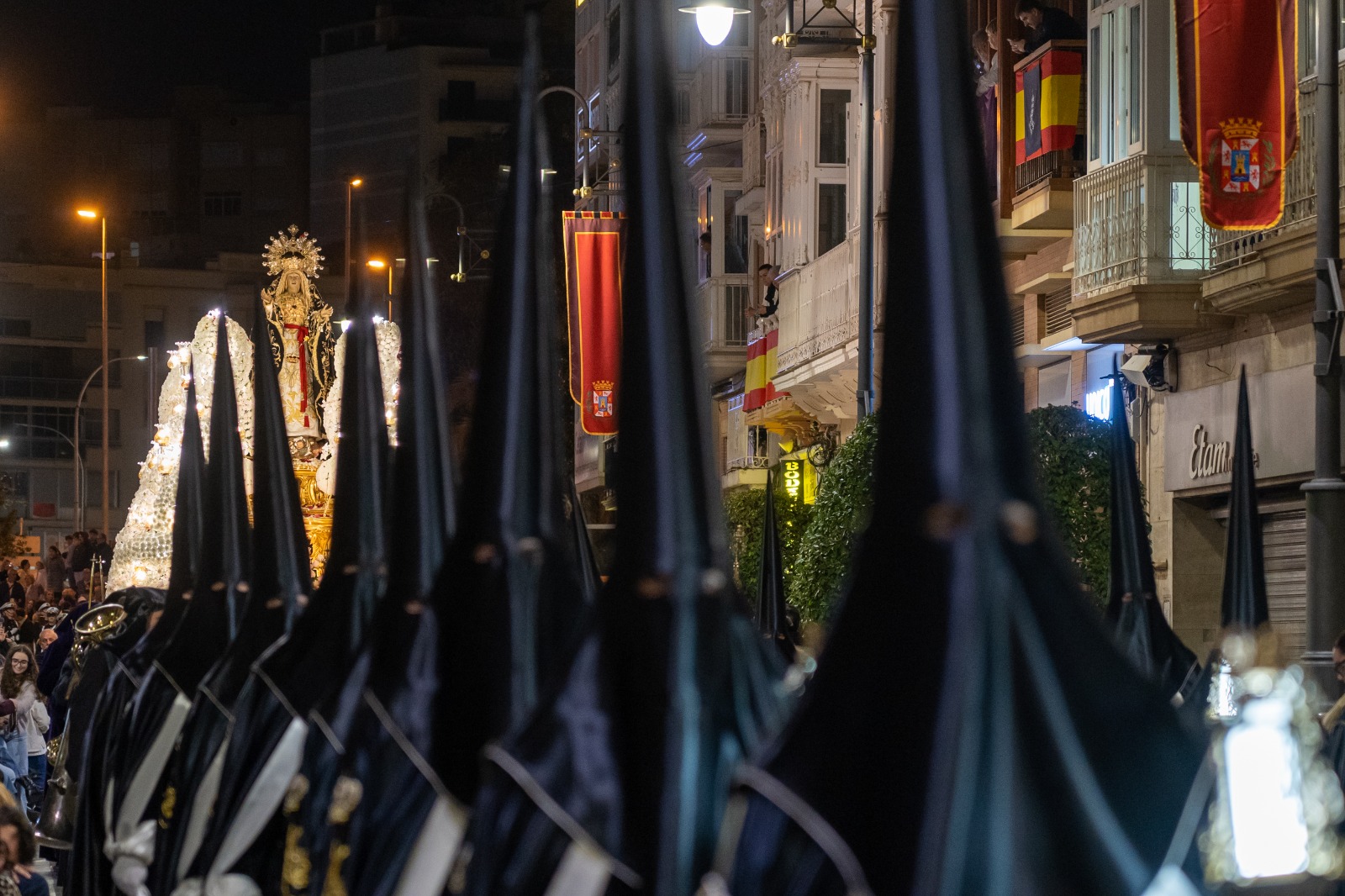 La comitiva, encabezada por la alcaldesa Noelia Arroyo, acompaña a la Cofradía Marraja en una solemne procesión marcada por el recogimiento