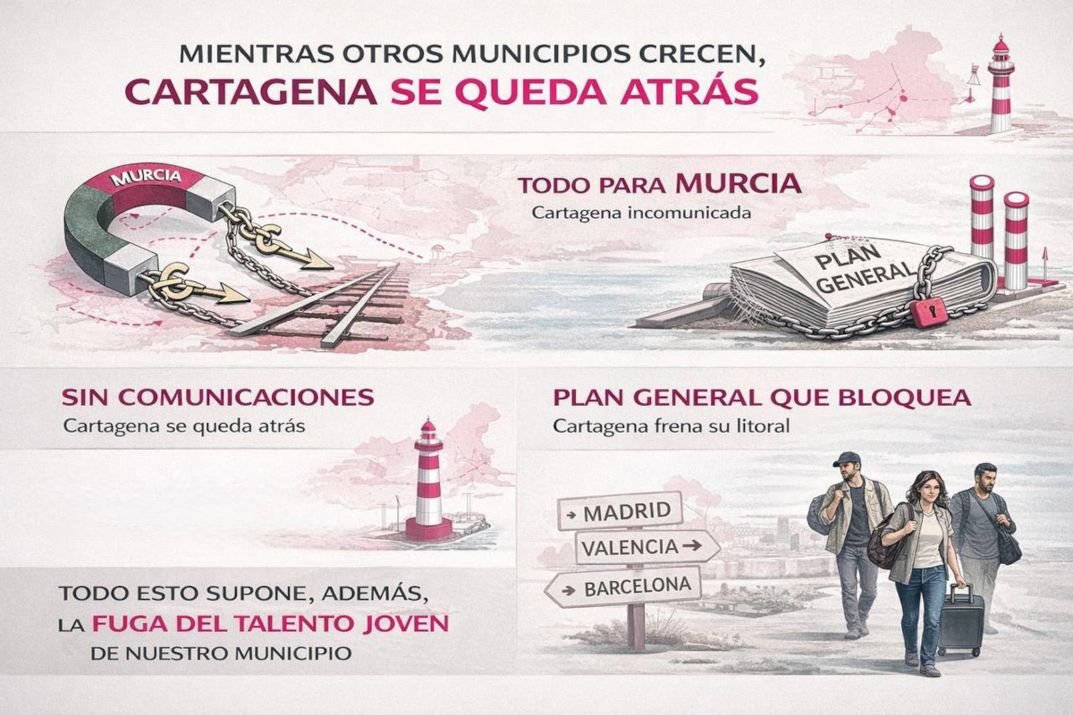 La comparación con Murcia también refleja la pérdida de peso de Cartagena. En la última década, Murcia ha ganado más de 33.000 habitantes, mientras Cartagena solo ha sumado apenas 6.000 vecinos. Además, Murcia crece un 7,6% en diez años frente al 3% cartagenero, lo que para MC confirma la existencia de “un modelo regional centralista que concentra inversiones y oportunidades lejos de Cartagena”.