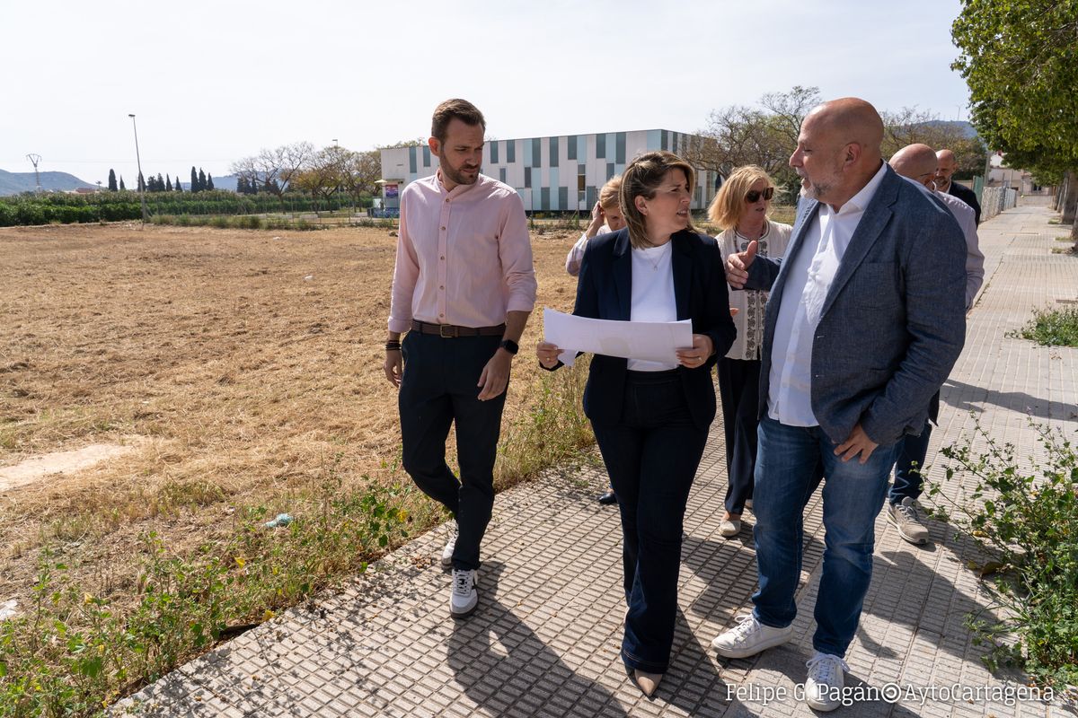 La alcaldesa, Noelia Arroyo, ha visitado los terrenos de la futura pista, que se sitúan junto al Local Social, el Aula de Estudio y el Centro de Día