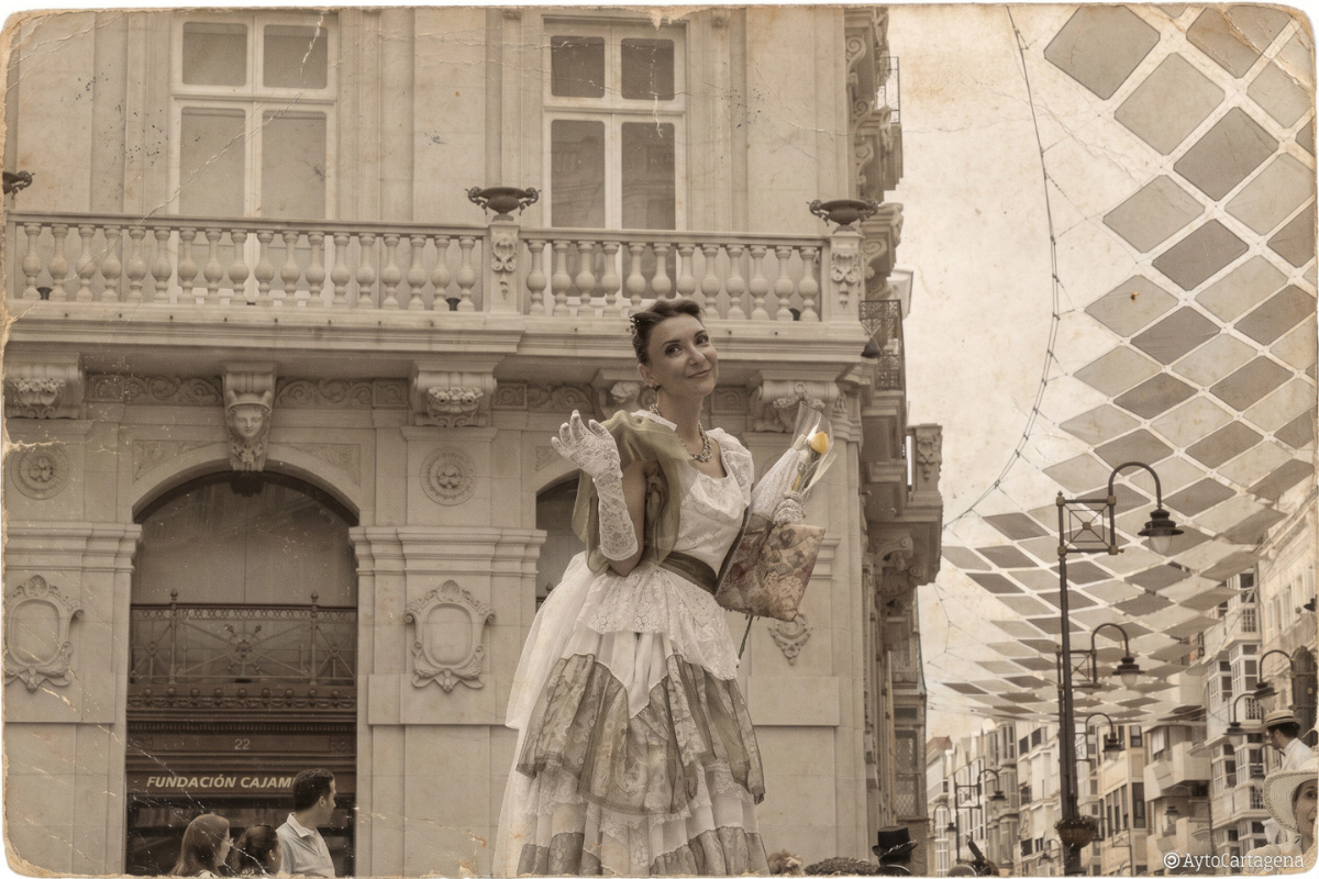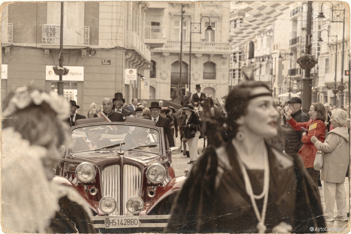 Este pasacalles, que partió desde la plaza del Ayuntamiento trasladó a los cartageneros y visitantes a los primeros años del siglo XX, cuando la riqueza minera y el bullicio del puerto transformaron Cartagena en un escenario de elegancia, innovación y arte. Por las calles del casco histórico se pudieron ver descapotables, carruajes de caballos, sombreros de ala ancha, sombrillas delicadas y trajes similares a los de aquella época. También el municipio recibió la visita del Rey Alfonso XIII.