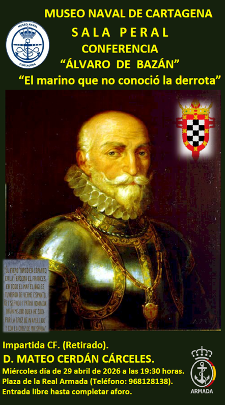 Las actividades darán comienzo este miércoles 29 de abril, con la celebración de la conferencia titulada “Álvaro de Bazán: El marino que no conoció la derrota”, organizada por el Museo Naval de Cartagena. El acto tendrá lugar en la sala Isaac Peral de la Facultad de Empresa UPCT, a las 19:30 horas y ofrecerá una visión rigurosa y divulgativa sobre la figura del almirante.
