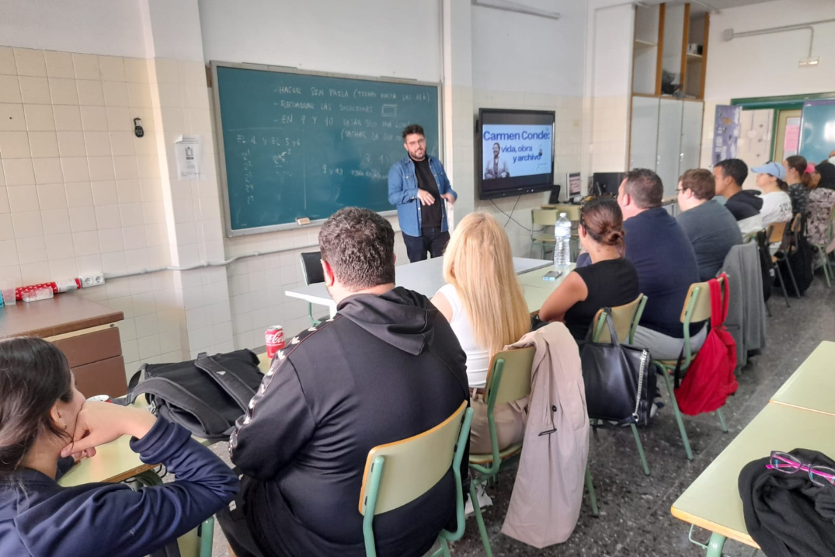 Las actividades en centros educativos arrancaron el 3 de marzo en el IES Isaac Peral, donde más de un centenar de alumnos pudo adentrarse en tres aspectos fundamentales de la insigne escritora: su vida, su obra y su archivo. Desde ese momento, Carmen Conde ha llegado a los IES Los Molinos, El Bohío, Jiménez de la Espada, Juan Sebastián Elcano y Mediterráneo. También al Centro de Educación para Adultos Carmen Conde. Las charlas son impartidas por Fran Garcerá, director del Patronato, quien ha recordado que "también se produjeron dos charlas importantes en febrero: por un lado, al alumnado de Libreta Mandarache, gracias a la colaboración con este proyecto de Juventud del Ayuntamiento; y, por otro lado, a los más de cien alumnos de Magisterio de ISEN, quienes podrán llevar a Carmen Conde a las aulas en el futuro".