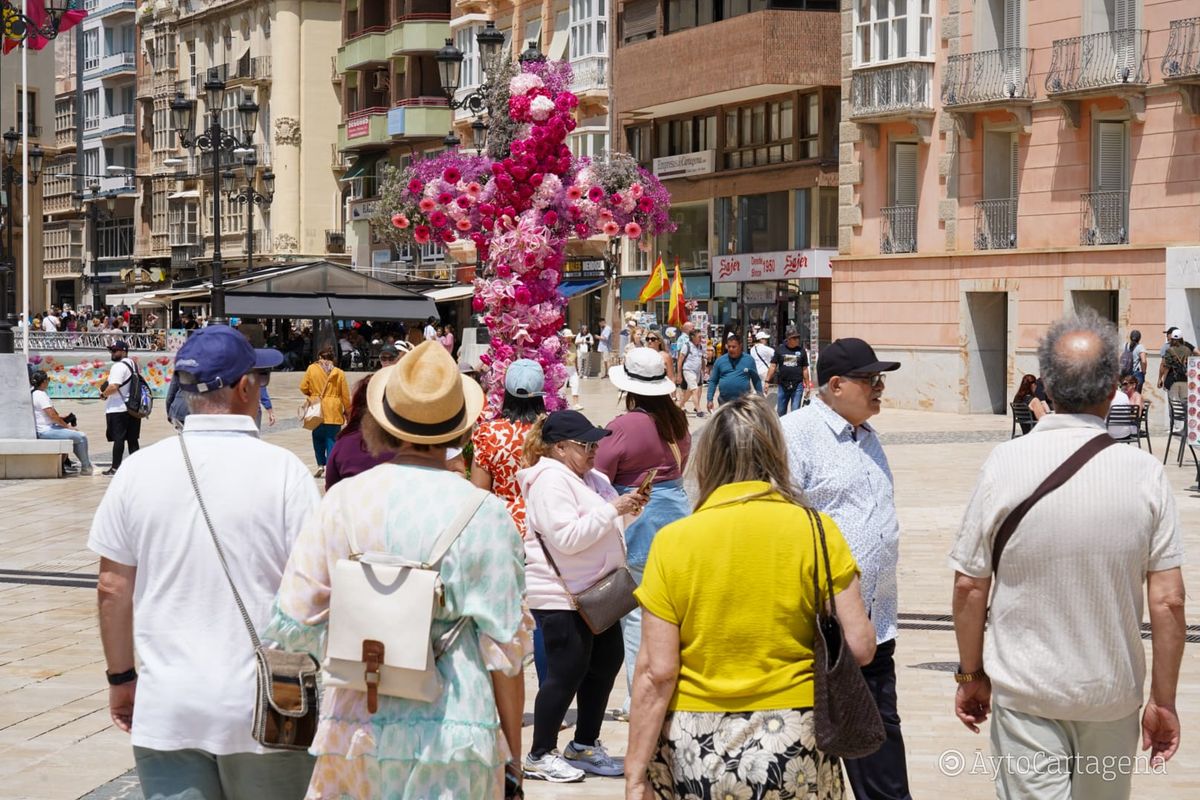 El Ayuntamiento de Cartagena, desde el servicio municipal de Parques y Jardines, ha diseñado una cuidada decoración florar con motivo de las festividades de las Cruces de Mayo. Esta actuación tiene como objetivo embellecer el centro de la ciudad mediante una propuesta que combina color y aroma que combina color y aroma, reforzando el ambiente festivo que se vivirá durante el fin de semana en la ciudad.