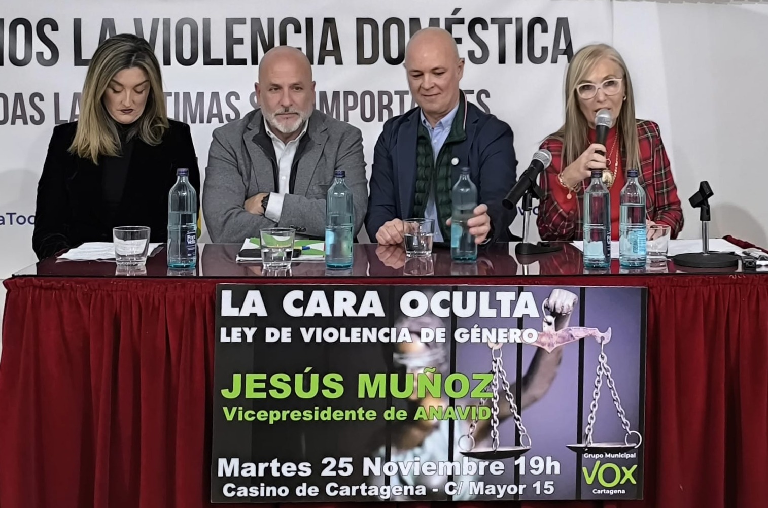 El Grupo Municipal de VOX Cartagena celebró la conferencia ‘La cara oculta de la Ley de Violencia de Género’, en la que abordó con rigor las nefastas consecuencias que tiene esta normativa para la sociedad. El ponente fue Jesús Muñoz, vicepresidente de la Asociación Nacional de Ayuda a las Víctimas Violencia Doméstica (ANAVID) y experto en la materia.
